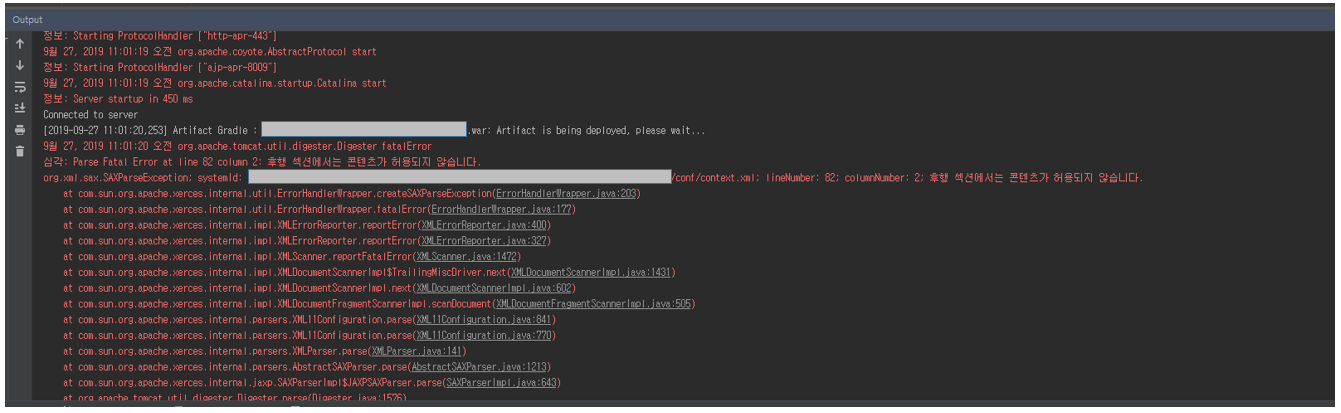 다음과 같은 에러가 발생하면서 tomcat이 기동되지 않았다.