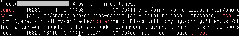 일단 tomcat이 어떻게 띄어져 있나 확인을 했더니