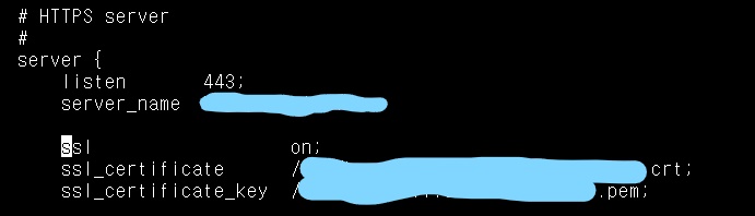 1. SSL인증서 위치를 확인하기 위해 웹서버(nginx) 설정파일 확인