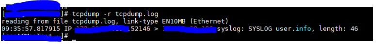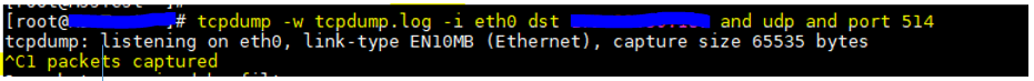 # tcpdump -w tcpdump.log -i eth0 dst xxx.xx.xx.xx and udp and port 514 => 목적이 ip가 xxx.xx.xx.xx인 곳으로 514포트를 사용하는 udp 패킷을 tcpdump.log 파일에 저장(!)
