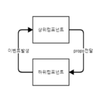 위에서 아래로는 porps, 아래에서 위로는 이벤트발생을 통해 통신했다면,
